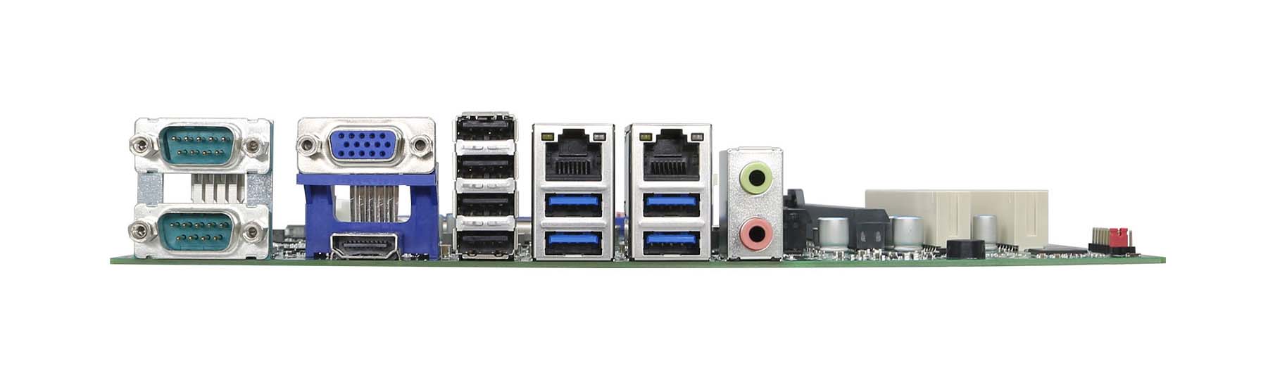 支持雙Intel千兆網口、10 x USB、10 x COM(2 x RS232/422/485 with auto Flow, 8 x RS232)